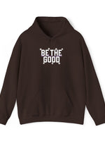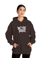 A soft, cozy hoodie that carries a quiet message: “Be The Good.” The minimalist pixel-style lettering sits front-and-center on a deep black background, so the sentiment reads clearly without shouting. The roomy kangaroo pocket and...