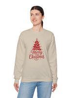 This cozy crewneck sweatshirt wraps quiet holiday cheer into a soft, lived-in silhouette. A simple red tree and flowing “Merry Christmas” lettering sit centered on a clean white background, giving a calm, classic seasonal look...