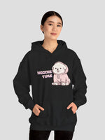 Wrap yourself in slow, cozy afternoons with this oversized hoodie that feels like a soft hug. A small, blushing pup in a hoodie sits just over the heart, paired with the playful “Hoodie Time” text — a quiet nod to snug routines, couch days, and companionable quiet. The medium-heavy 50/50 blend holds warmth without weight. The double-lined hood and color-matched drawcord give structure and a subtle, polished look. Wear it after a long walk, during a low-key movie night, or while sipping a warm drink as the world slows down.