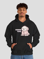 Wrap yourself in quiet comfort and gentle charm with this cozy hoodie. A soft, muted graphic—an adorable pup tucked into a tiny hoodie beside the words “Hoodie Time”—sits on a smooth black backdrop, creating a warm, low-key look that reads like a hug. The medium-heavy 50/50 knit gives a plush, slightly structured drape that stays warm without feeling bulky. The roomy kangaroo pocket and adjustable color-matched drawcord invite you to curl up with a book, take a slow stroll at dusk, or settle in for a relaxed coffee date. Subtle details like the double-lined hood, tear-away neck label, and durable printing methods keep everyday wear comfortable and long-lasting. This hoodie moves easily from lounging at home to casual outings, and its soft, whimsical design speaks to anyone who appreciates simple, comforting style.