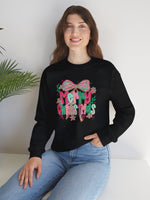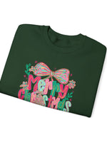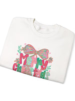 Soft, cozy, and quietly festive — this crewneck brings a gentle holiday charm to everyday wear. The clean white sweatshirt features a hand-drawn style “Merry Christmas” graphic in candy-pastel hues with a oversized bow and scattered floral accents. It sits relaxed at the shoulders and holds shape thanks to a ribbed collar and double-needle stitching, so it feels lived-in without losing structure. Wear it on chilly mornings while wrapping presents, during slow coffee sips by twinkling lights, or at low-key family gatherings where comfort and a bit of seasonal sweetness matter. Thoughtfully made with ethically grown US cotton and OEKO-TEX certified dyes, it’s built for repeat wear and easy care — a soft layer that quietly celebrates the season rather than shouting it.