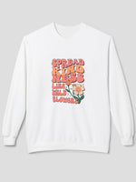 Embrace comfort and positivity with this unisex midweight softstyle fleece crewneck sweatshirt. Featuring an uplifting message to 'Spread Kindness Like Wildflowers', this sweatshirt radiates warmth and good vibes, making it perfect for casual gatherings, cozy nights in, or a day out with friends. Ideal for those who cherish kindness and want to make a statement through their style, this soft crewneck is perfect for individuals who enjoy expressing themselves while staying comfortable. Great for gifting during the holidays, birthdays, or any occasion where kindness is celebrated, this sweatshirt fits seamlessly into your everyday wardrobe and serves as a reminder to spread joy wherever you go.